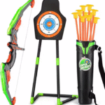 Ce kit de tir à l’arc enfant est parfait pour initier les enfants aux jeux d’adresse. Grâce aux flèches à ventouse, l’enfant peut viser la cible et progresser à son rythme, tout en s’amusant.